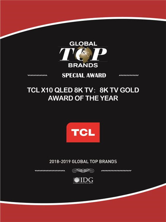4、單項獎:X10 QLED 8K TV榮獲“2018-2019年度8K電視金獎,8K TV Gold Award of the Year。”