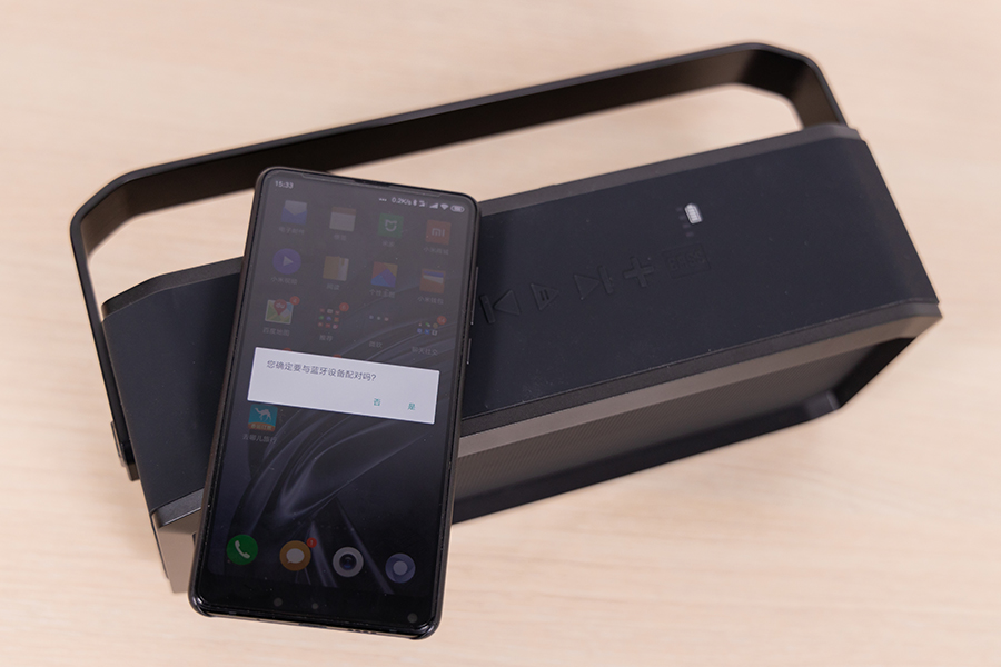 這款音箱有3種連接方式,既有藍牙連接又有AUX連接,如果你的手機帶有NFC功能還可方便的將手機NFC區域貼在音箱頂部的NFC感應區域,手機會立即彈出提示進行NFC連接,十分方便。如要進入藍牙配對模式只需長按播放鍵后等提示音即可完成配對。