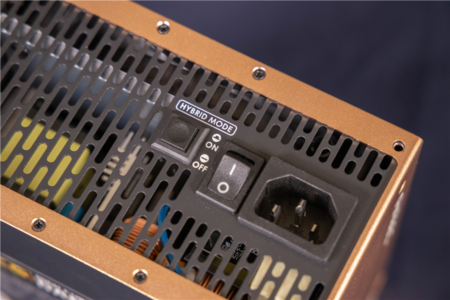 安鈦克HCG X1000支持智能溫控模式,在負載不高的時候風扇會停轉保持安靜。通過開關邊上的按鈕可以進行模式的切換。