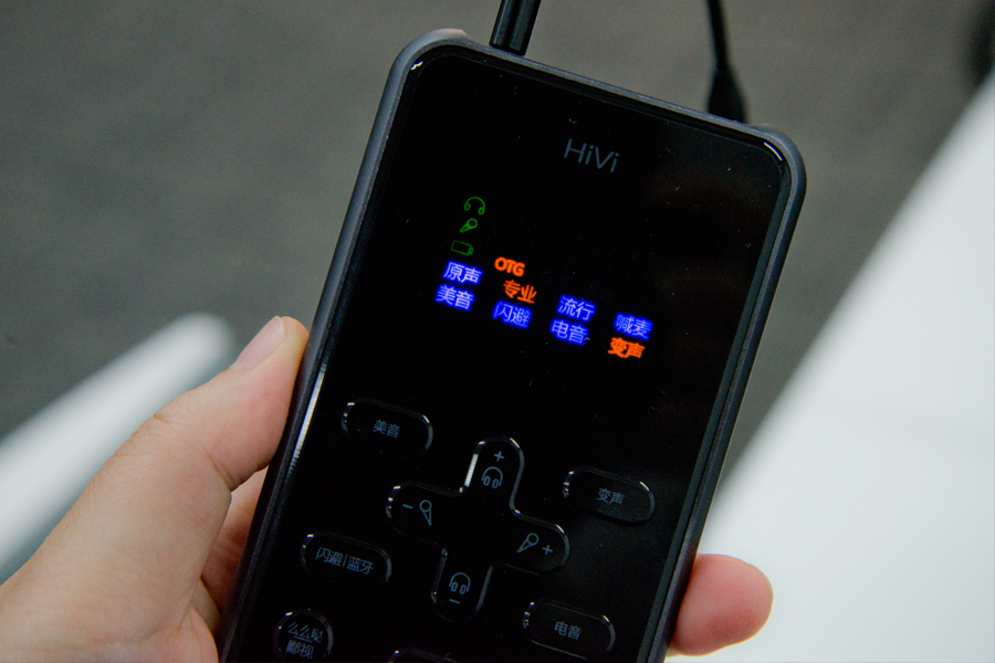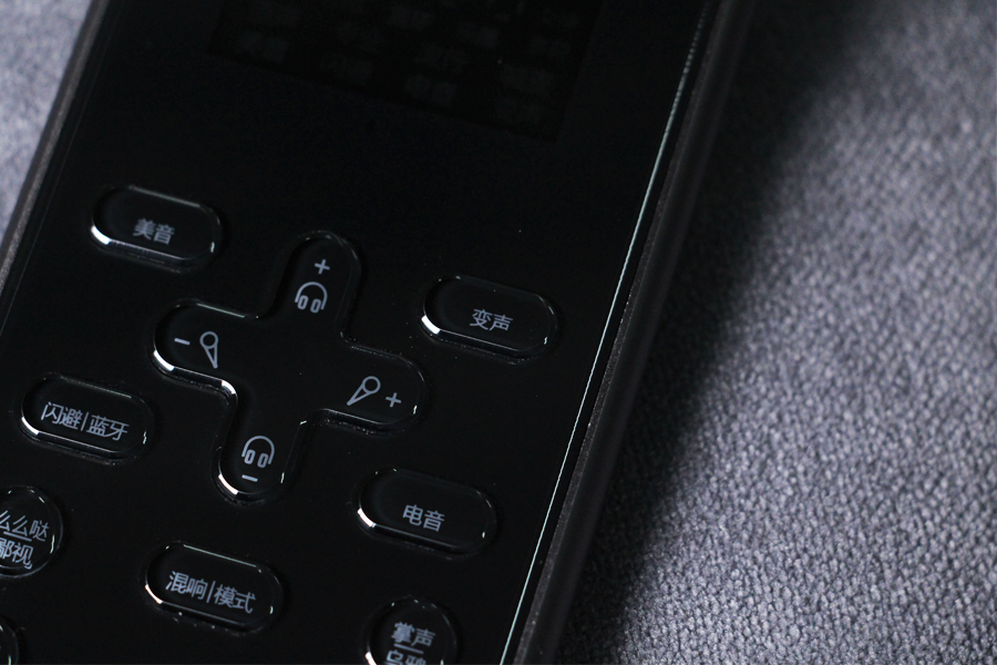 來到音效體驗環節,因為提供了OTG-Lightning轉接線,所以我準備了一臺iPhone X,一條可以監聽聲音效果的帶耳麥的耳機。先別被主機上的按鍵嚇退,它多卻不復雜,每項功能都有清楚的標注,只需要傻瓜式按動需要的效果鍵就可進行一鍵調節。比如我對變聲非常好奇,按下變聲按鈕后看著顯示屏數字從1到9增加,能聽到聲音從低沉到尖銳的改變。