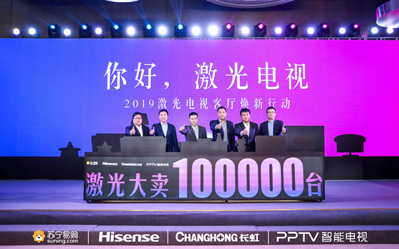 2019年2月21日,蘇寧易購攜手海信、長虹、PPTV在南京啟動了“2019激光電視客廳煥新行動”。三家激光電視巨頭聯手家電渠道龍頭共同推動激光電視的普及,共同將激光電視推入自己的“黃金時代”。