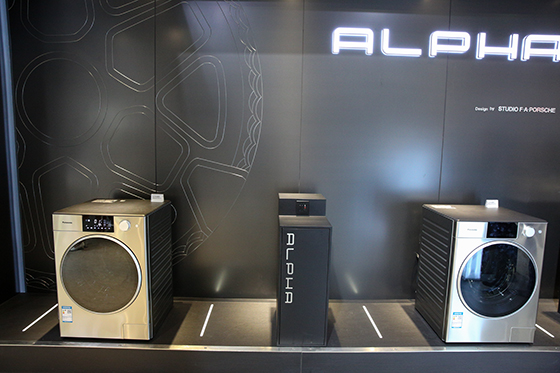首先是2019年松下主打的全新Alpha系列洗衣機,這是松下與保時捷設計聯合跨界合作推出的高端產品,其中借鑒了不少來自于高級跑車的靈感設計,特制高級鋁材的材質用料也極其高檔,讓Alphai機器具有觀賞美感。