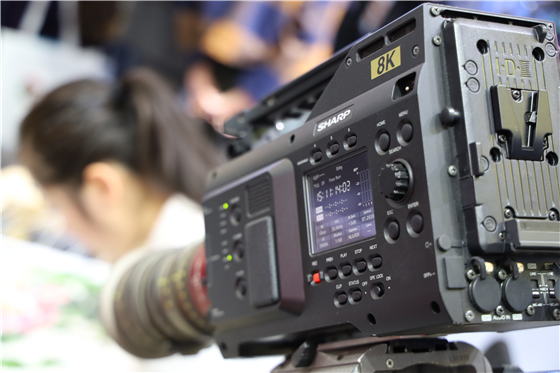 在現(xiàn)場,夏普除了展示了自己第一臺(tái)8K照相機(jī),更展示了世界首款集視頻拍攝及錄制、回放、和8K60P線路輸出功能于一體的專業(yè)攝像機(jī)8C-B60A。