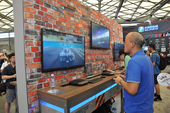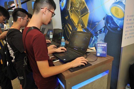 英特爾精心布置了近200平方米的展臺,其中大部分區域擺設了讓用戶體驗各種酷炫游戲的PC產品。例如采用了i7-6700HQ+GTX970m+16GB內存+256GB SSD+1TB HDD配置的未來人類T7-Skylake。全新的第六代酷睿處理器集各種高級功能于一身,改進了三維游戲體驗,降低功耗,提升性能,配合新型PC機為玩家帶來極致游戲體驗。