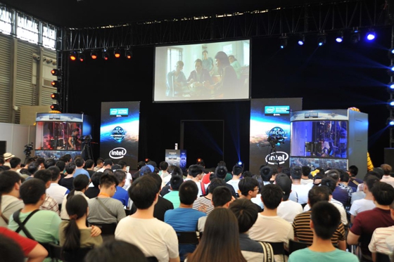 英特爾還將英特爾極限大師賽(IEM)帶到了現場,并邀請了多位星際爭霸2高手即時對戰,賽事開始后現場座無虛席。