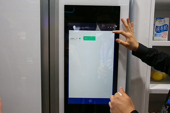 智慧廚房領域,海爾冰箱進行了技術升級,在一塊屏幕上不僅加入了人臉識別,推送菜譜,訂購食材等功能,還能留下語音留言,給家人告知哪些食材放在冰箱的具體哪個位置,家人就不用在冰箱里翻箱倒柜式的尋找食材了。