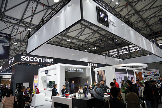 進入展區后,米技的整體智能廚房展區的展廳設計和陳列的產品都恰到好處,既不浮夸也不俗套,十分的典雅,一下子就讓人感受到了高端品質的廚房設計。