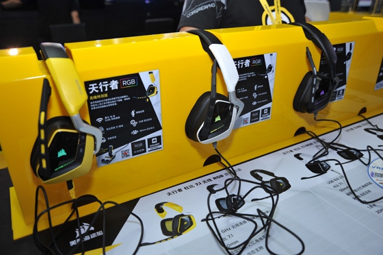 天行者游戲耳麥和懲戒者RGB多彩背光機(jī)械游戲鍵盤在展覽區(qū)組裝起來,上機(jī)展示。有線的無線的,還有炫酷的RGB款。一排看過去過足眼癮!