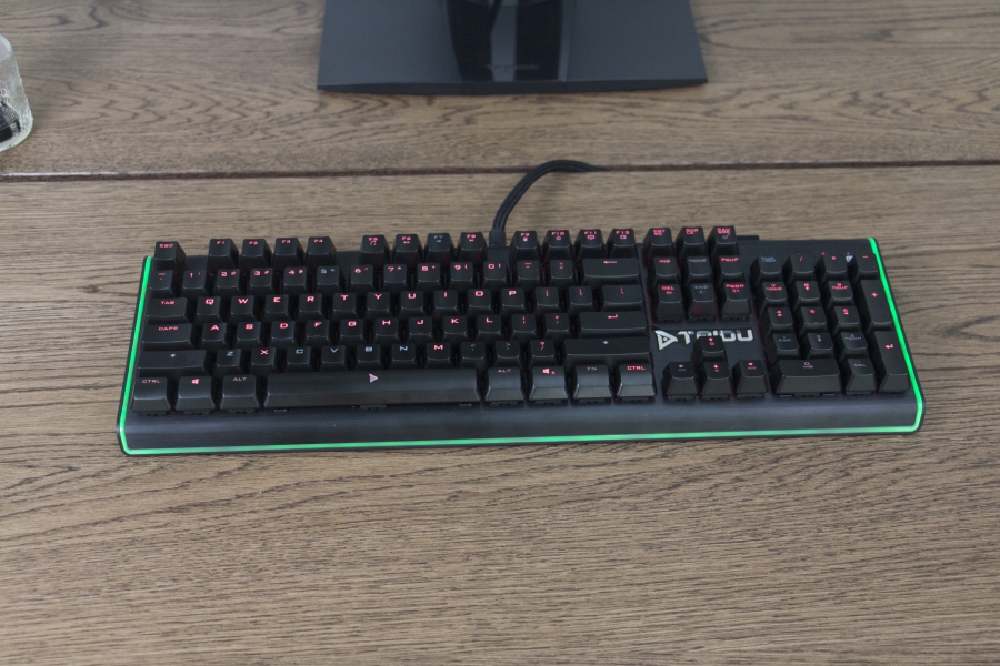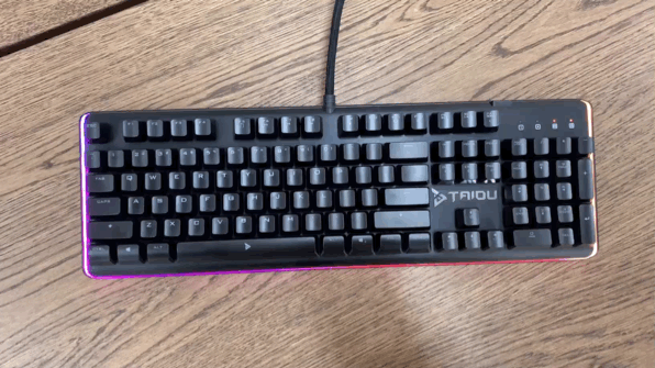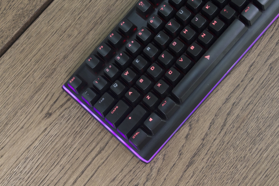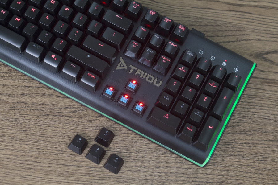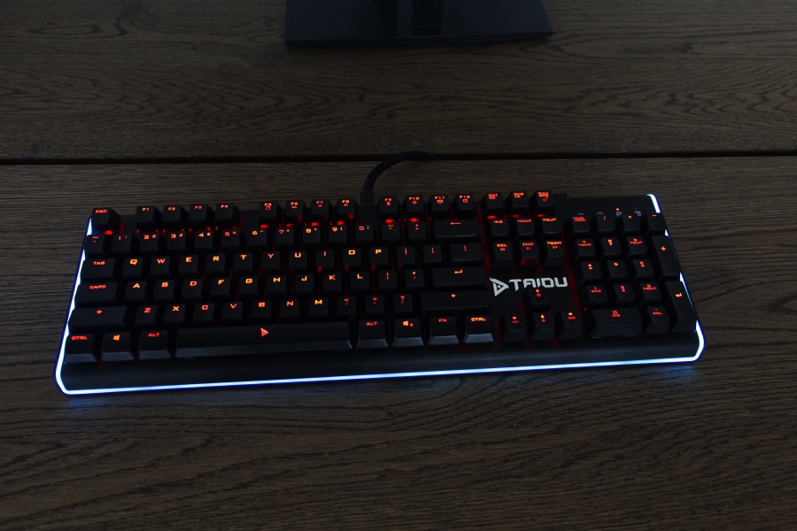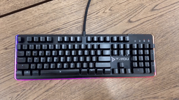 鈦度TKM600X又叫做幻彩師,它的每一個(gè)鍵帽底下都藏有一顆獨(dú)立的背光燈,可以用過按下FN+數(shù)字鍵1-6來進(jìn)行調(diào)節(jié)背光效果。同時(shí),鍵盤四周擁有一圈RGB燈帶,燈帶顯示色彩為1680萬色,且同樣支持用組合按鍵來進(jìn)行背光效果的切換,組合按鍵為FN+數(shù)字鍵7-0,以及FN+方向鍵和加減按鍵。