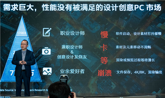 Intel分享的數據顯示,目前的設計創意PC市場由于性能未被滿足,因此仍有巨大的需求。包括1700萬職業設計師、2100萬兼職設計師和創業設計發燒友、以及7700萬業余愛好者在內都是這一市場的潛在迭代用戶。而在進入了5G時代之后,4k/8K等超高清視頻制作需求更是會催生出極大的新市場。
