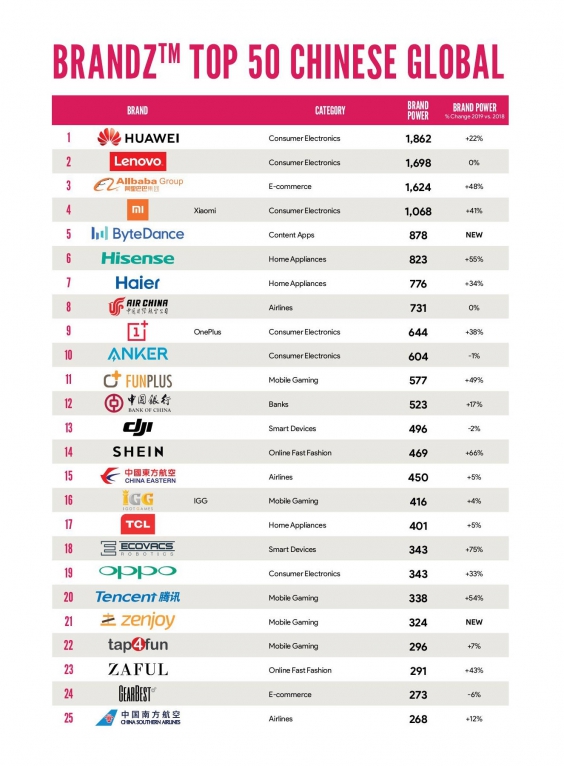 中國出海品牌50強:華為超過聯(lián)想 首次沖向第一