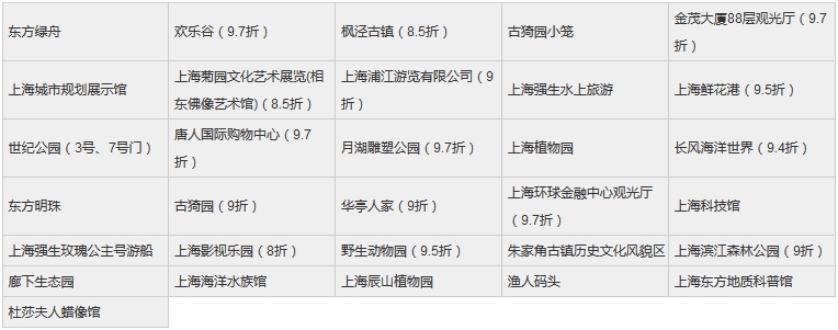 除此之外,握奇手環還可以在上海許多旅游景點使用,旅游卡能享受的優惠握奇手環一樣可以享受。