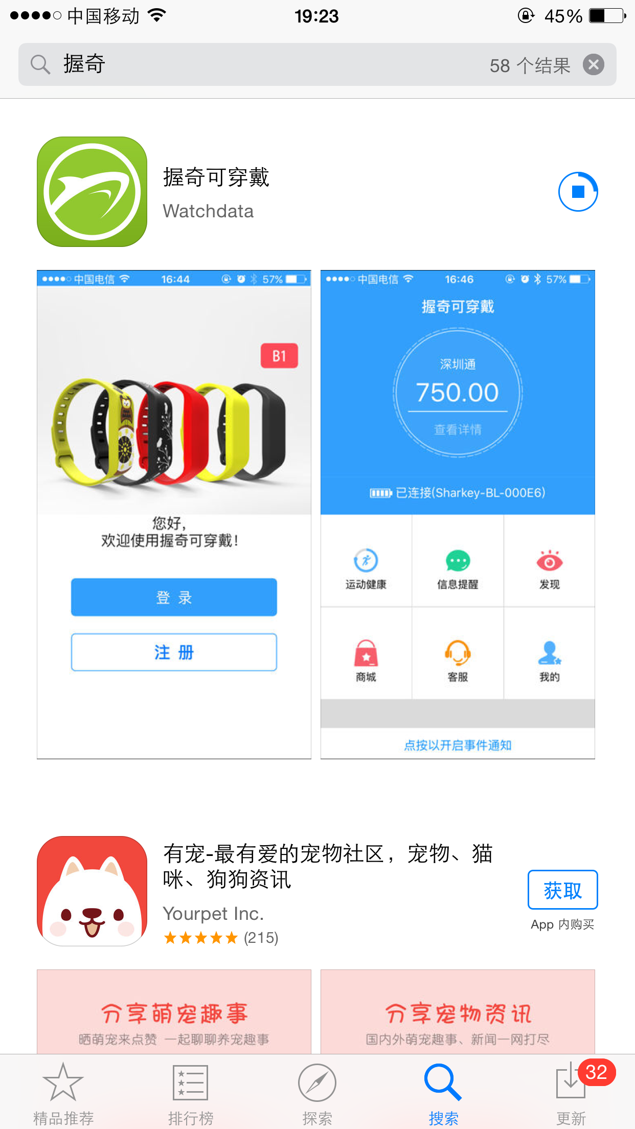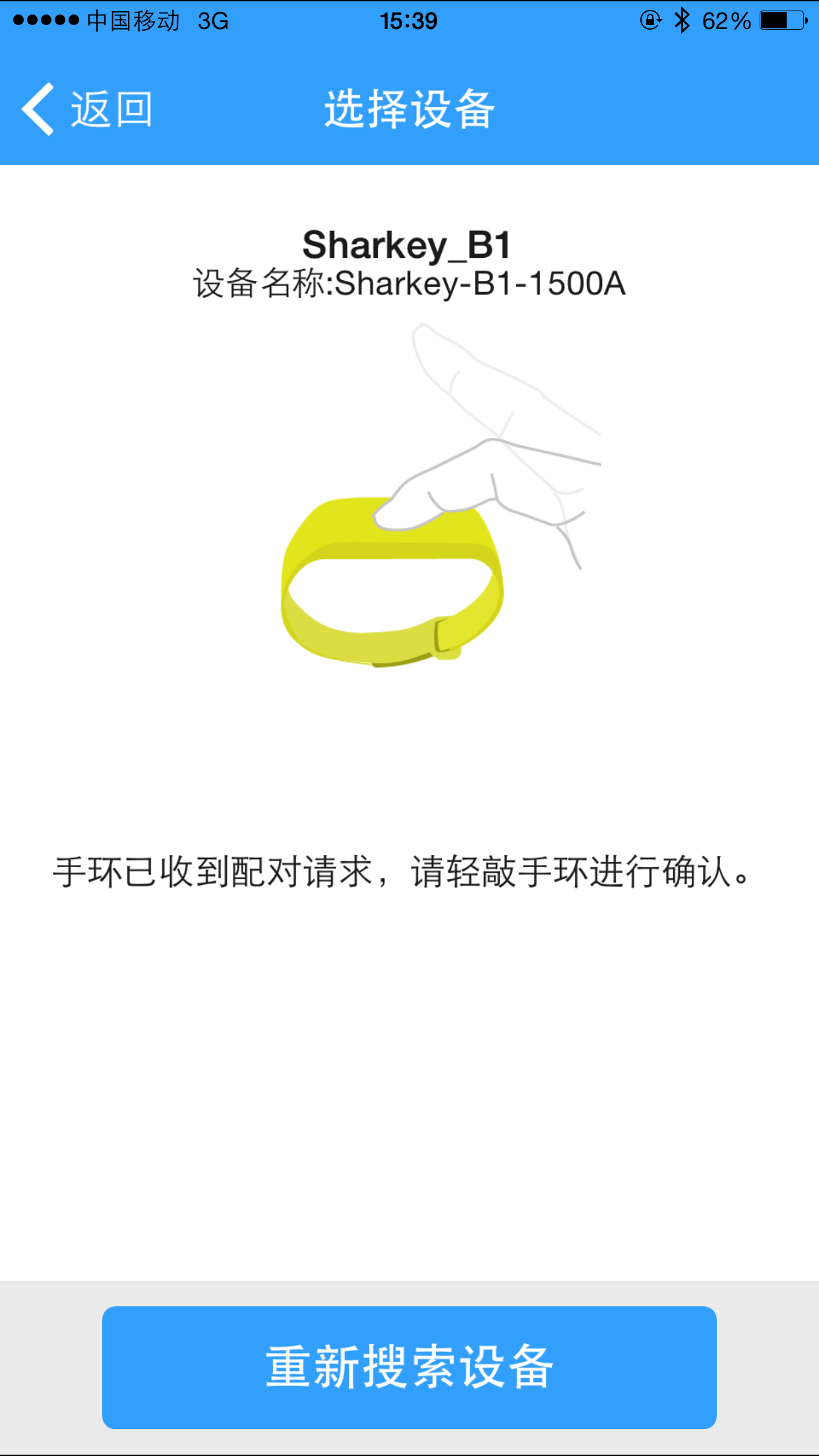 在使用這款手環之前,記得下載握奇可穿戴APP,并且根據提示操作綁定手環,當出現下圖最后一張界面時就代表綁定成功了,接著就可以開始我們的魔都之旅了。