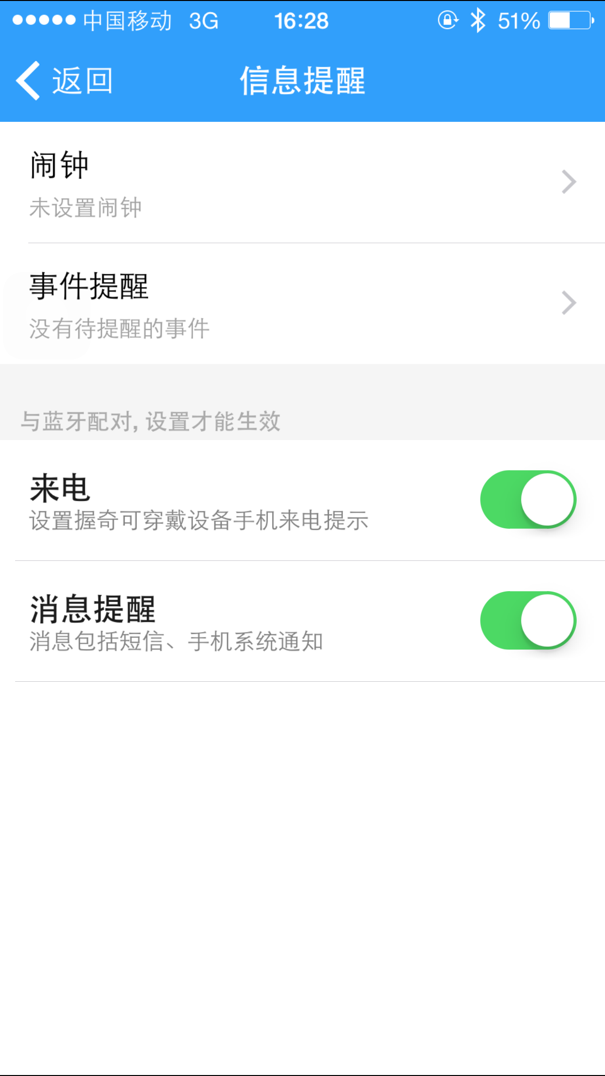 最后我們來介紹一下提醒功能,這個功能確實不錯,除了可以設置鬧鐘外,IOS系統還可以對日歷中的事件進行提醒,當有電話,短信,手機系統通知時也可以提醒,可謂是非常實用的一個功能。