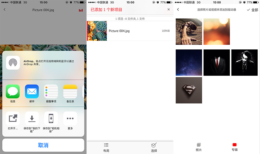 而打開設備Wi-Fi后,用戶可使用智能終端連接到閃迪歡欣暢享無線閃存盤,用戶可以通過免費的SanDisk Connect APP(目前提供了ios、安卓以及Kindle平臺下載)來訪問U盤內的數據。而這款產品可同時連接上3臺移動智能終端進行數據訪問。需要提醒一下的是,當U盤插在電腦上時Wi-Fi功能則暫時不可用。
