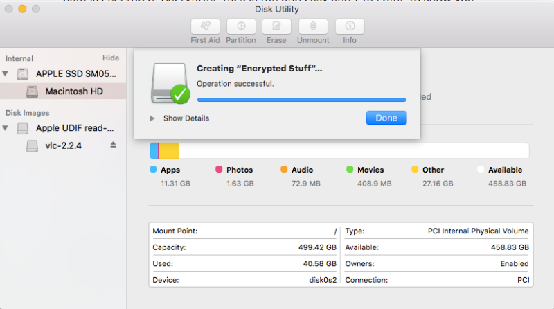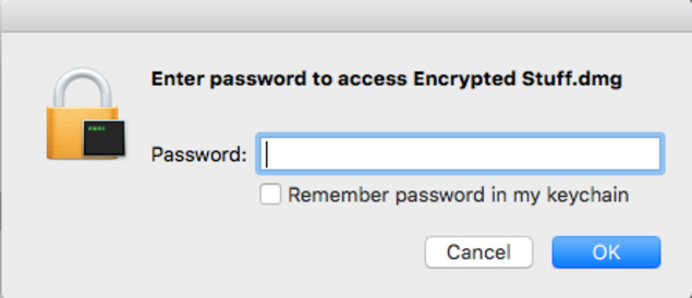 當你點擊那份加密文檔(它現在保存的文件名為.dmg)的時候,它將會要求你輸入你之前設定的密碼。(希望你還記得自己的密碼)
